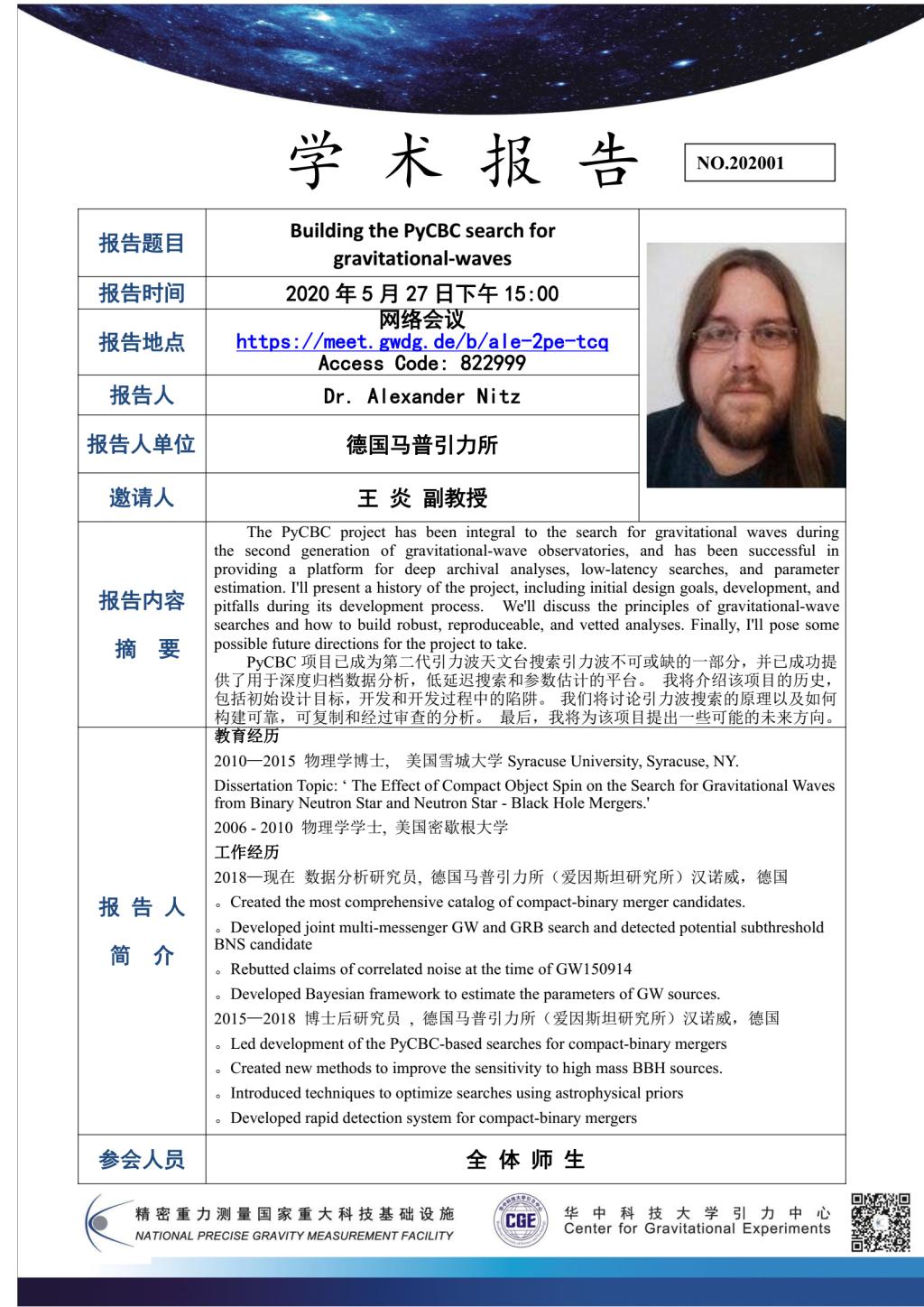 学术报告(20200527)Building the PyCBC search for gravitational-waves