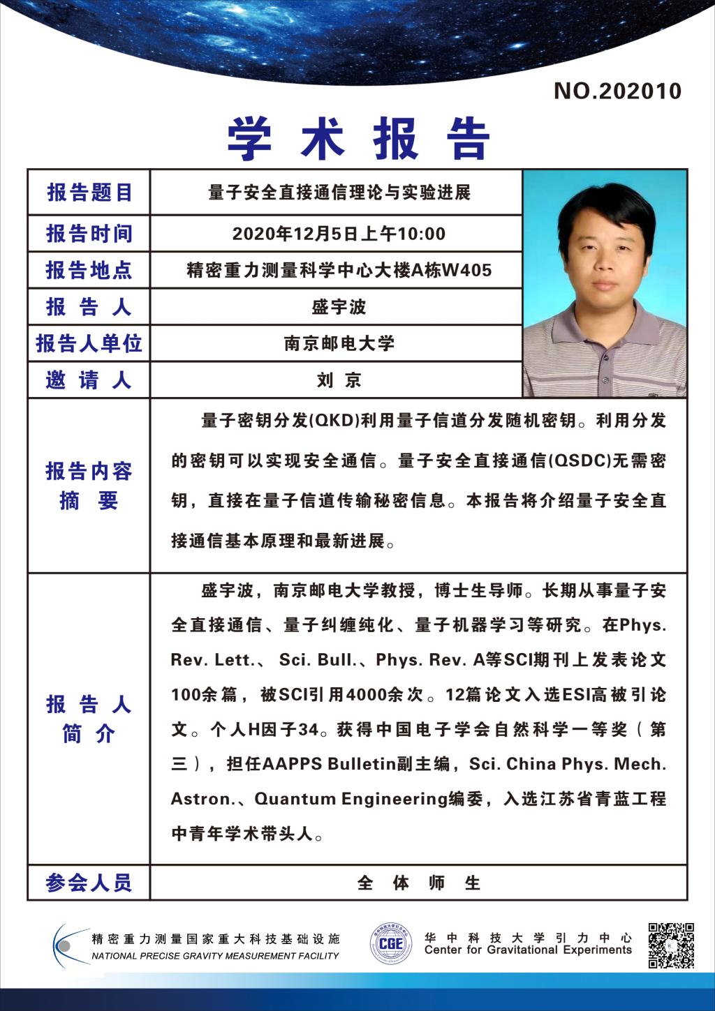 学术报告(20201205)量子安全直接通信理论与实验进展