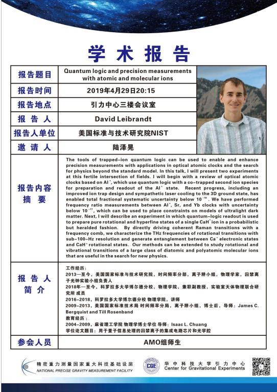 学术报告(20190429)Quantum logic and precision measurements with atomic and molecular ions