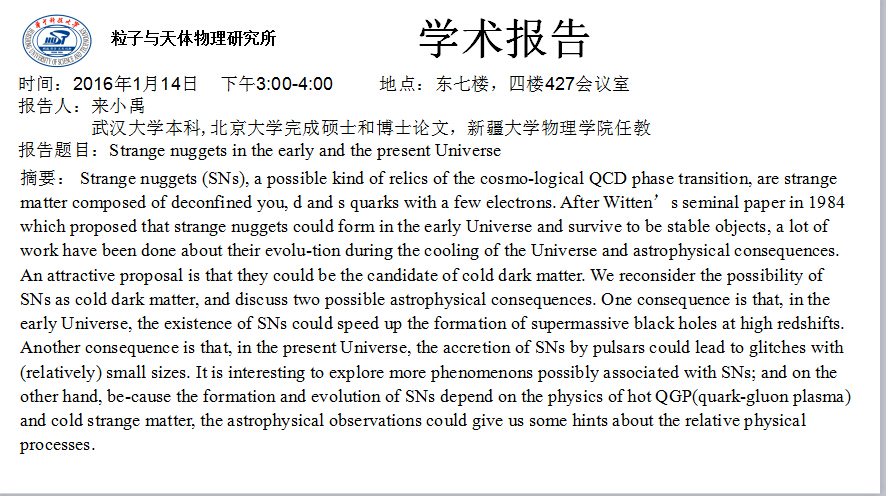 学术报告(20160114)Strange nuggets in the early and the present Universe