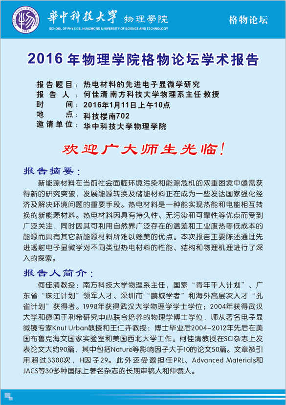 格物论坛(20160111)热电材料的先进电子显微学研究