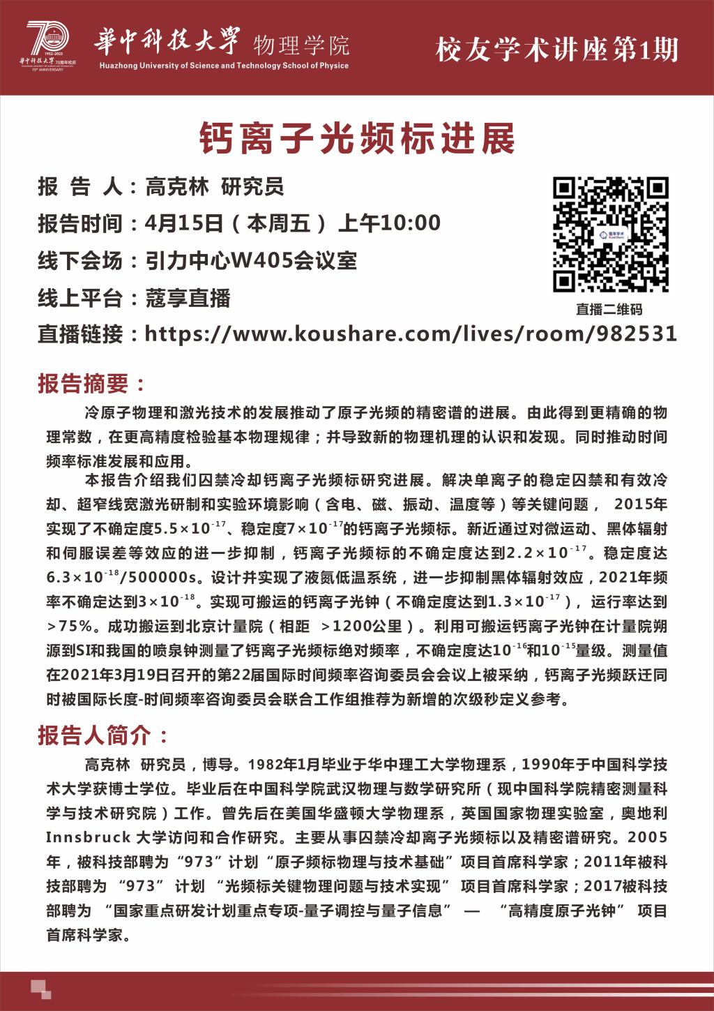 校友学术讲座(20220415)钙离子光频标进展