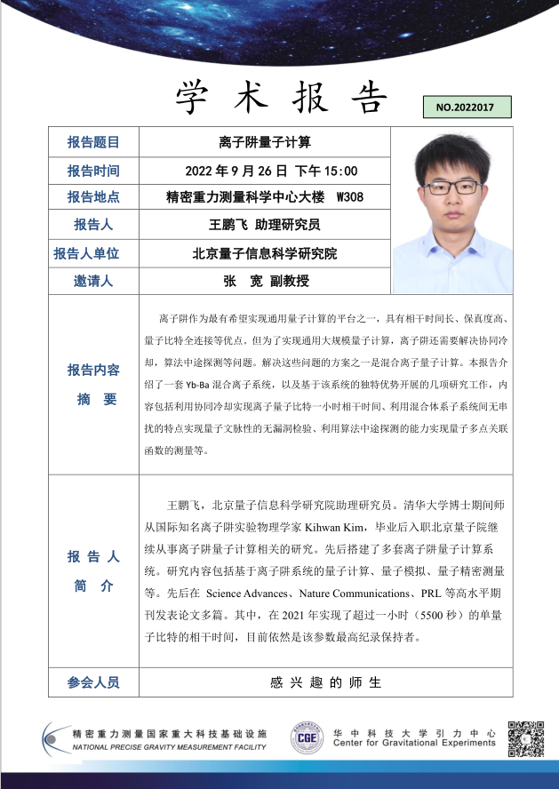 学术报告(20220926)离子阱量子计算