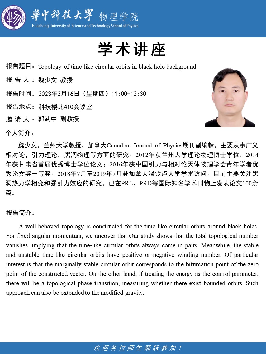 学术报告(20230316)Topology of time-like circular orbits in black hole background