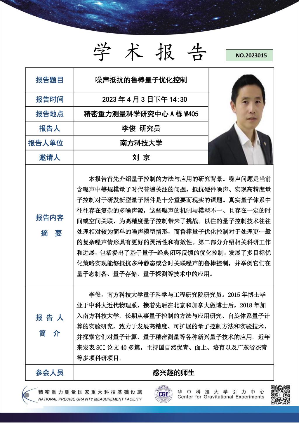 学术报告(20230403)噪声抵抗的鲁棒量子优化控制