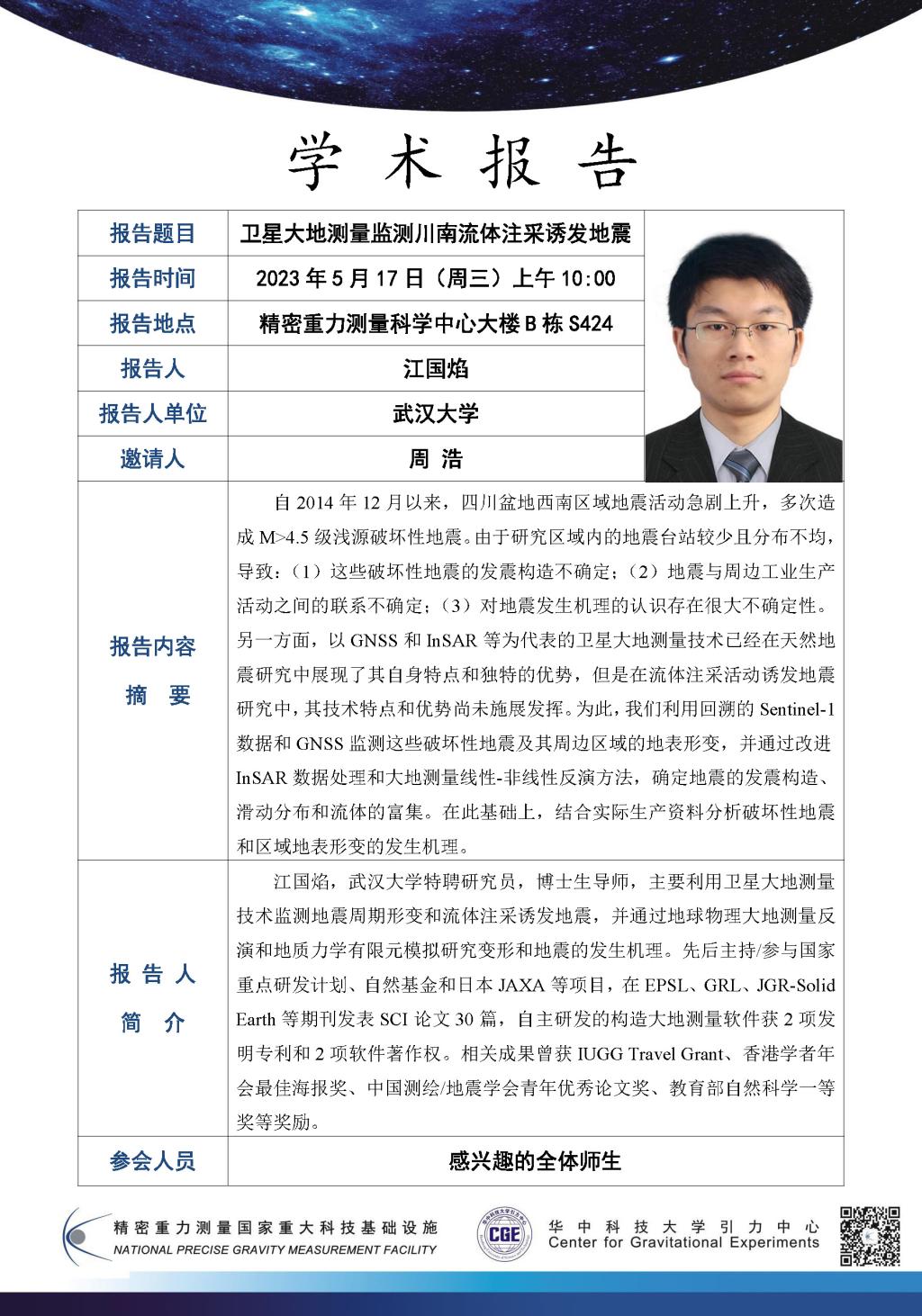学术报告(20230517)卫星大地测量监测川南流体注采诱发地震