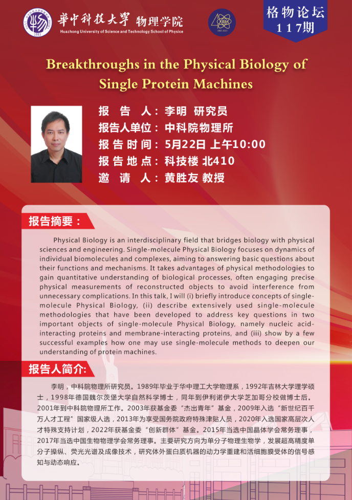格物论坛117期(20230522)Breakthroughs in the Physical Biology of Single Protein Machines