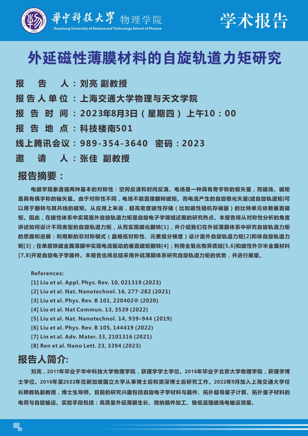 学术报告(20230803)外延磁性薄膜材料的自旋轨道力矩研究