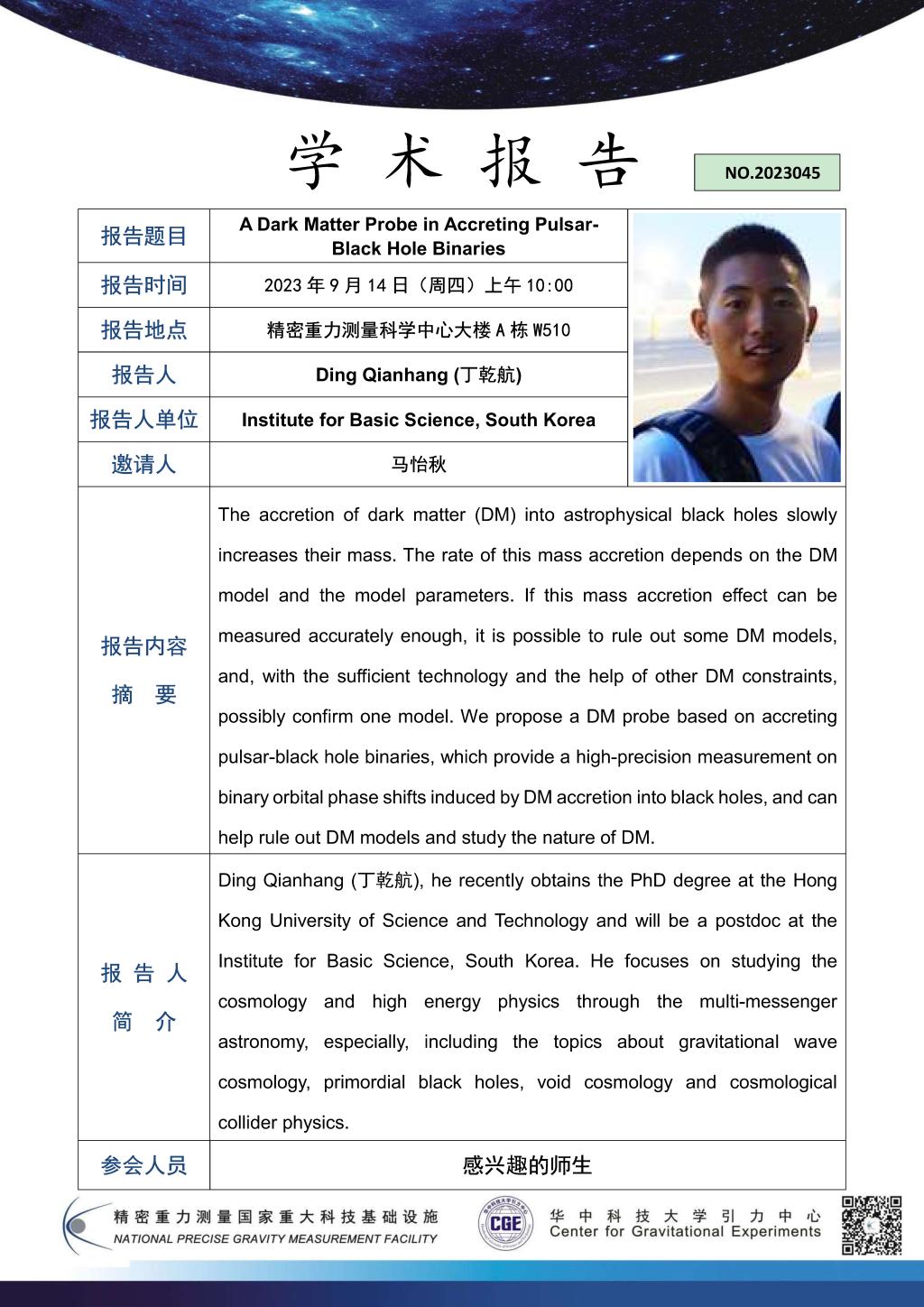 学术报告(20230914)A Dark Matter Probe in Accreting Pulsar-Black Hole Binaries