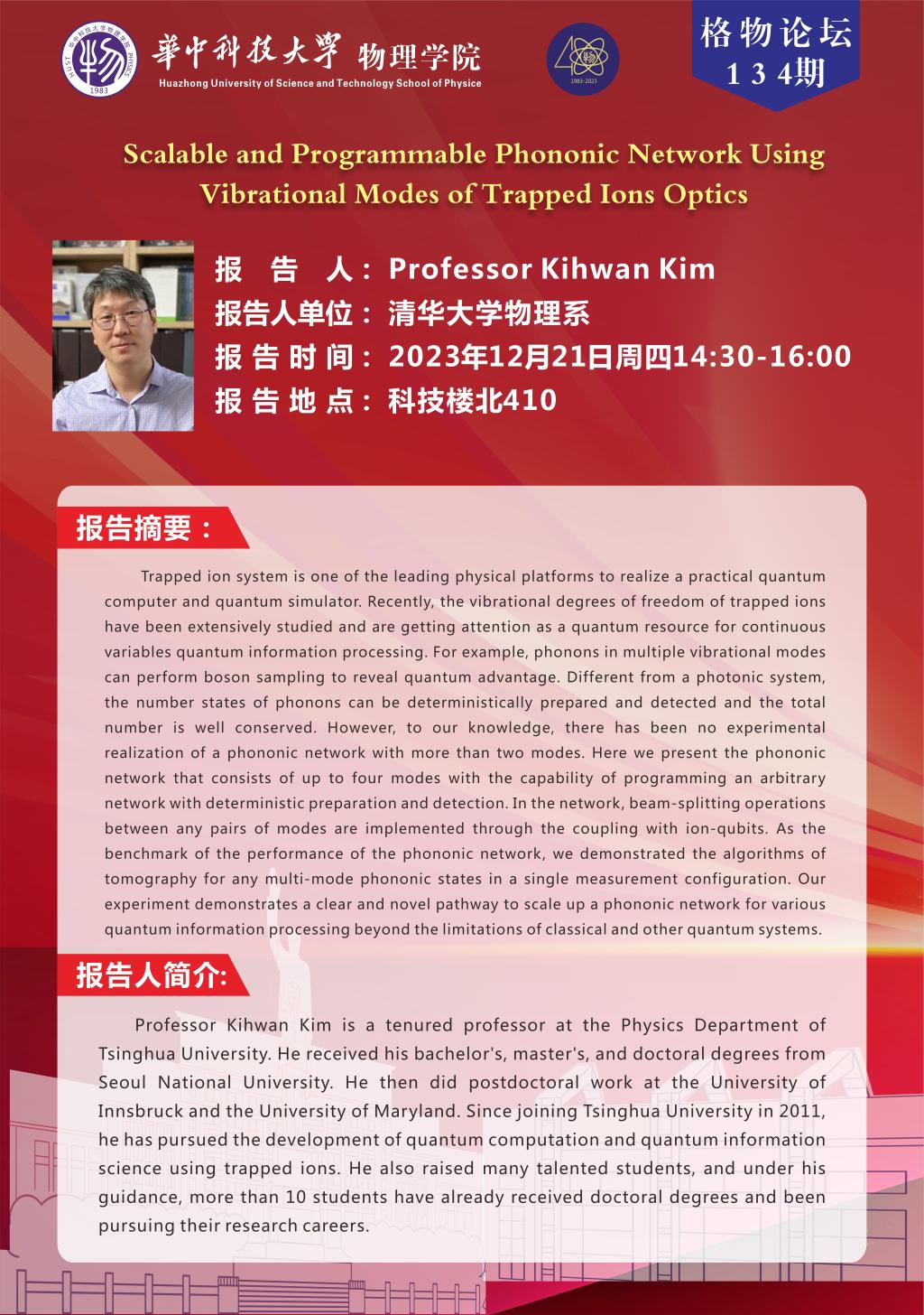 格物论坛134期(20231221)Scalable and Programmable Phononic Network Using Vibrational Modes of Trapped Ions Optics