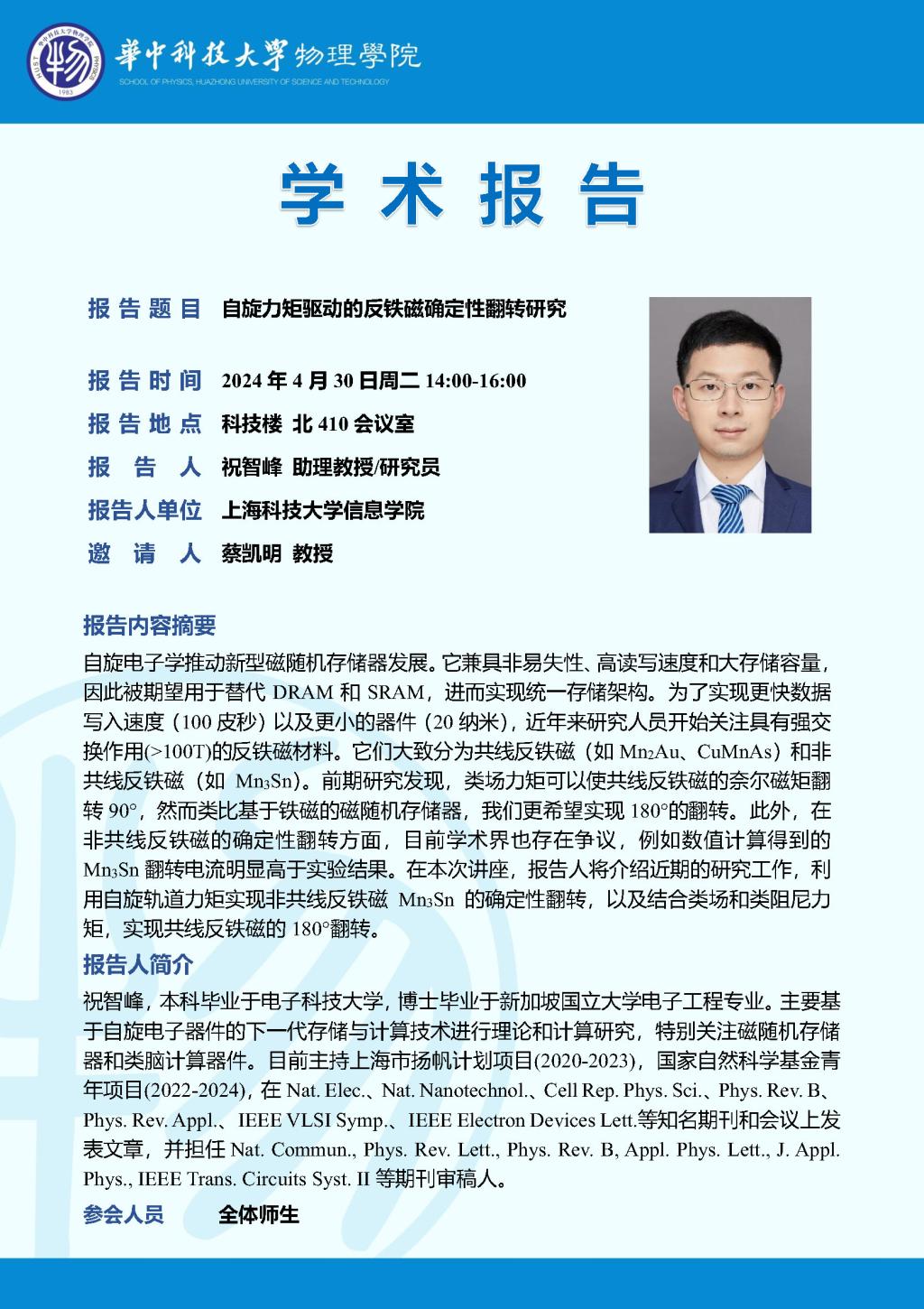 学术报告(20240430)自旋力矩驱动的反铁磁确定性翻转研究