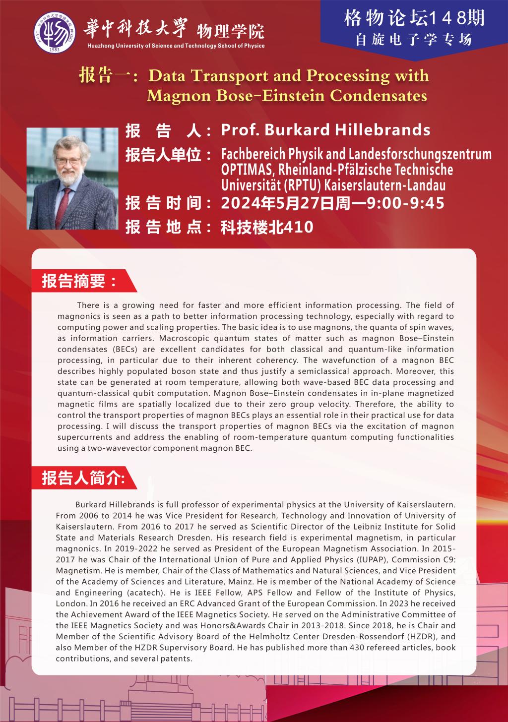 格物论坛148期(20240527)报告一:Data Transport and Processing with Magnon Bose–Einstein Condensates