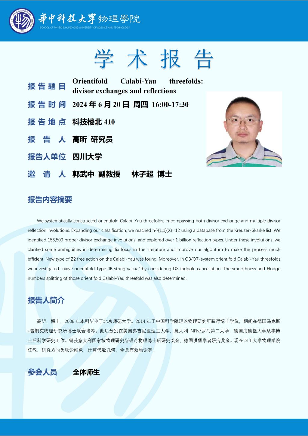 学术报告(20240620)Orientifold Calabi-Yau threefolds: divisor exchanges and reflections
