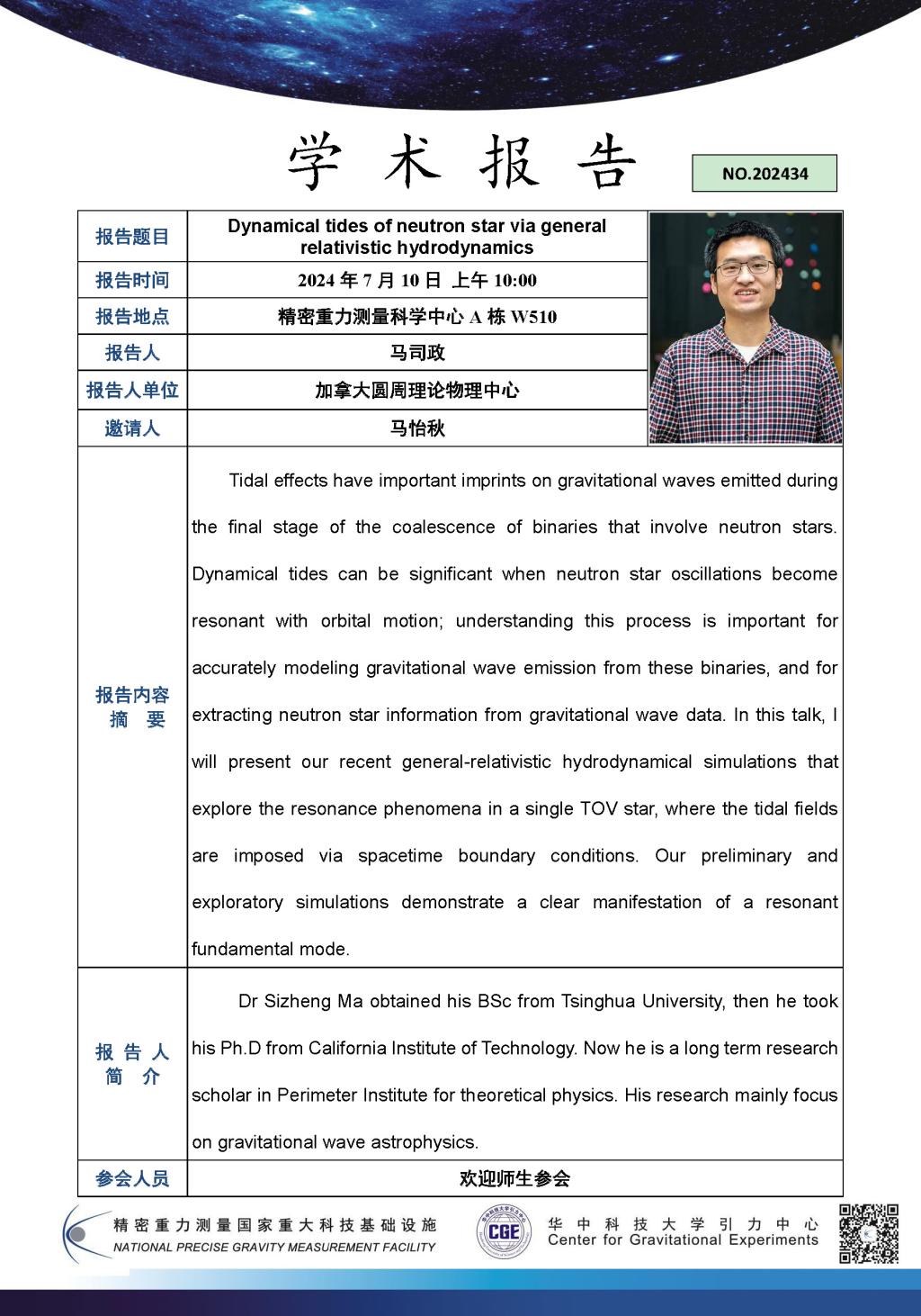 学术报告(20240710)通过一般相对论流体动力学研究中子星的动力学潮汐