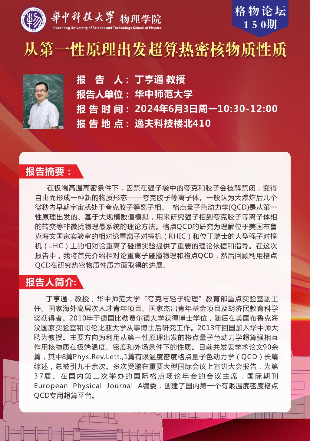 格物论坛150期(20240603)从第一性原理出发超算热密核物质性质