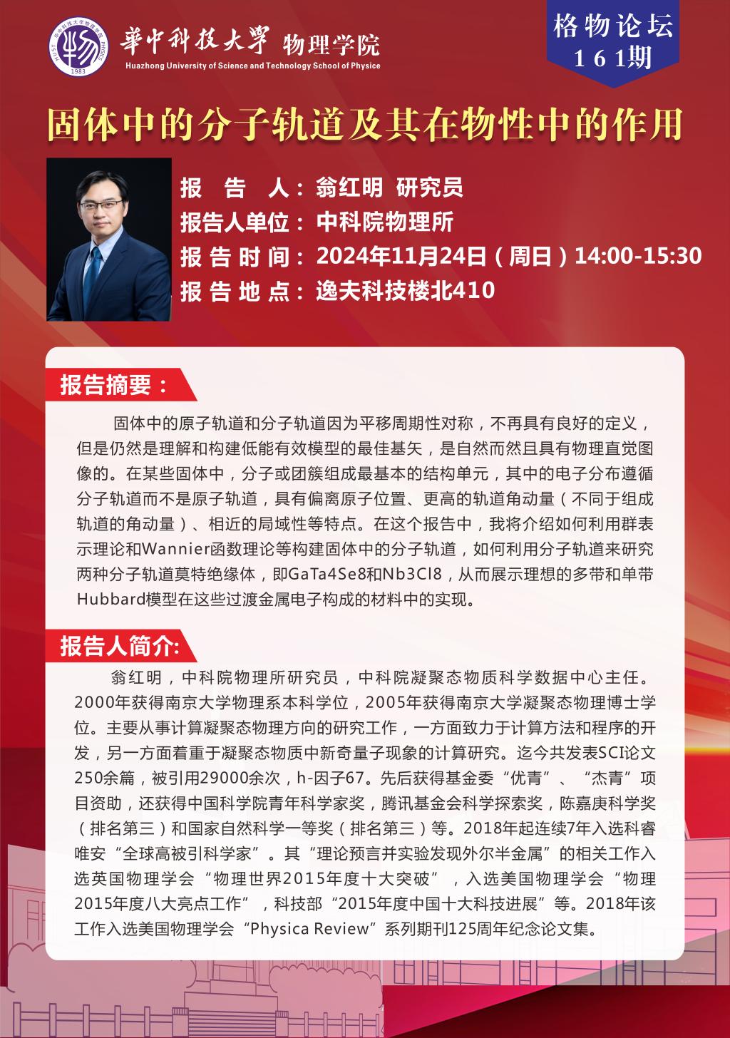 格物论坛161期(20241124)固体中的分子轨道及其在物性中的作用