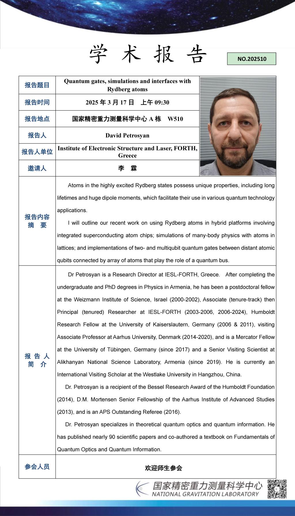 学术报告(20250317)Quantum gates, simulations and interfaces with Rydberg atoms