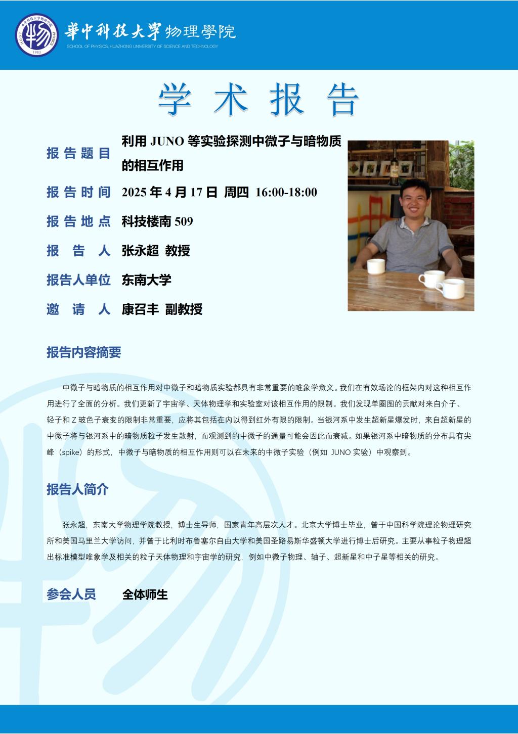 学术报告(20250417)利用JUNO等实验探测中微子与暗物质的相互作用