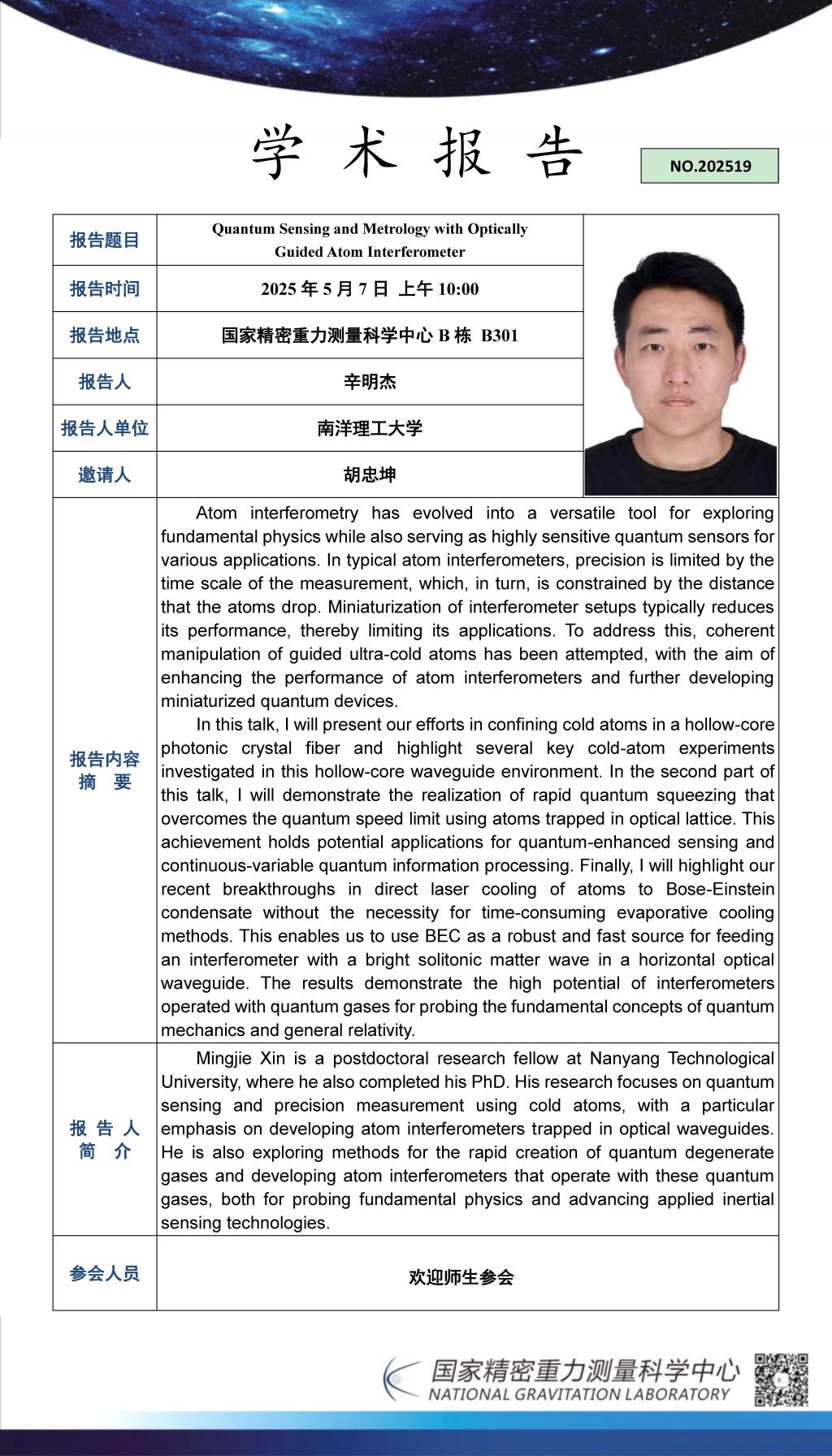 学术报告(20250507)Quantum Sensing and Metrology with Optically Guided Atom Interferometer