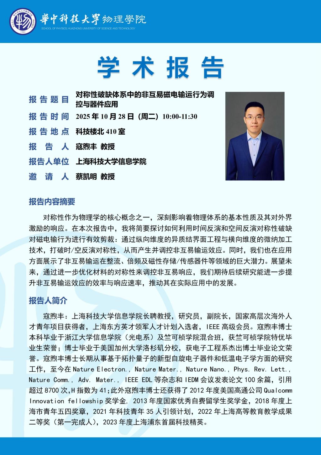 学术报告(20251028)对称性破缺硯体系中的非互易磁电输运行为调控与器件应用