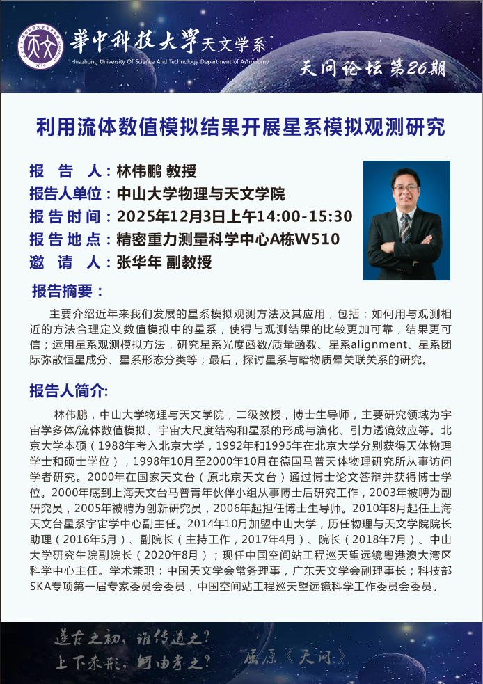 天问论坛第26期(20251203)利用流体数值模拟结果开展星系模拟观测研究