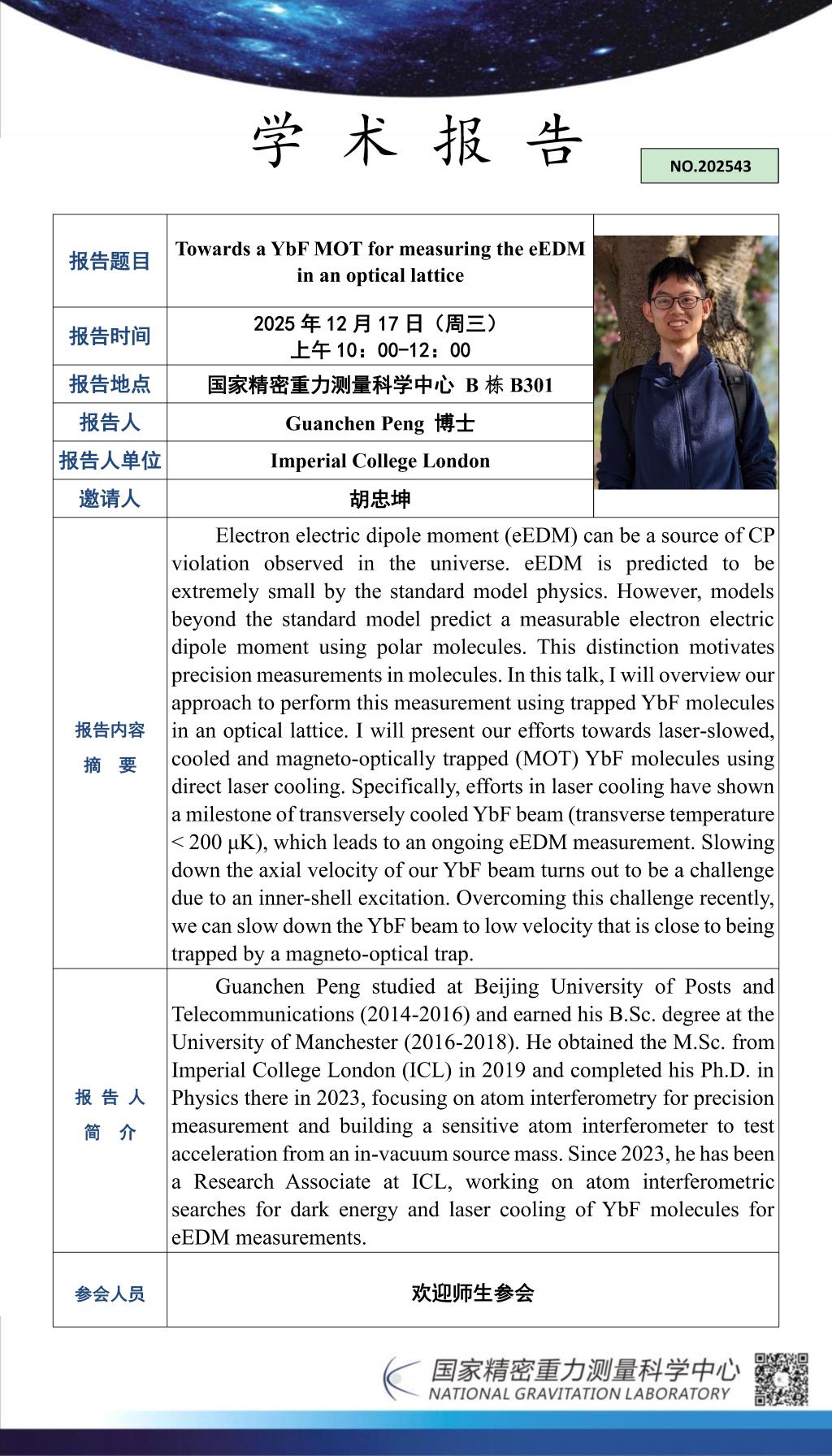 学术报告(20251217)Towards a YbF MOT for measuring the eEDMin an optical lattice