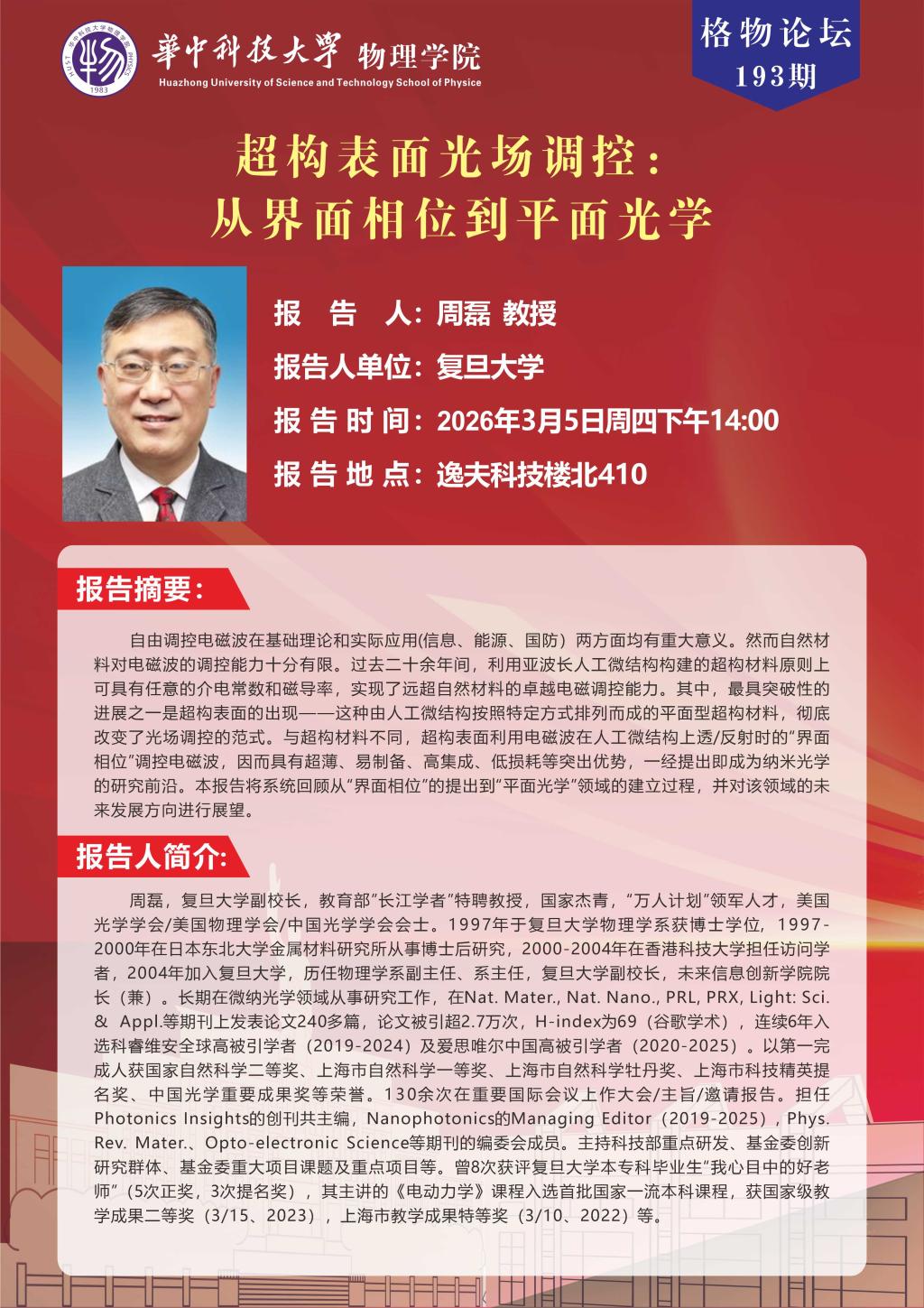 格物论坛193期(20260305)超构表面光场调控:从界面相位到平面光学