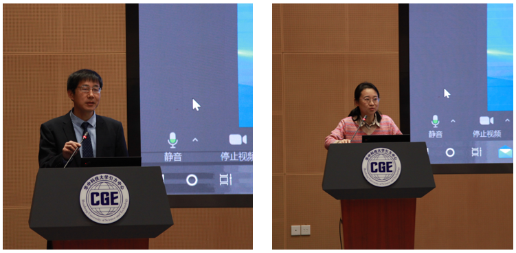 左图:物理学院院长陈相松致开幕辞 右图:张洁教授介绍引力中心概况