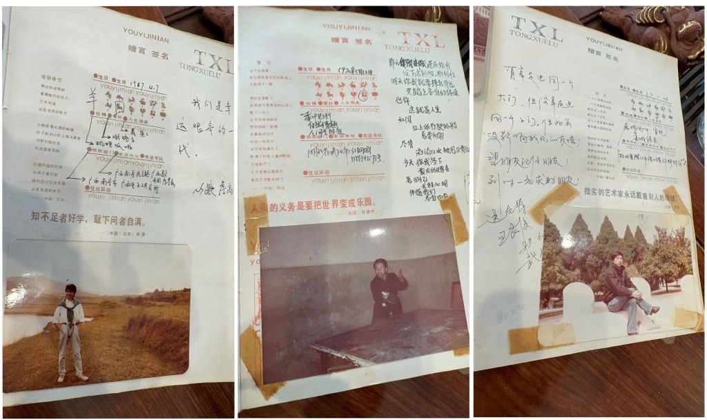 “(我们)毕业前几天,拿个本子,每个同学都签个名。这个很有纪念意义,每个人还给同学留个言,然后自己给一张照片。”