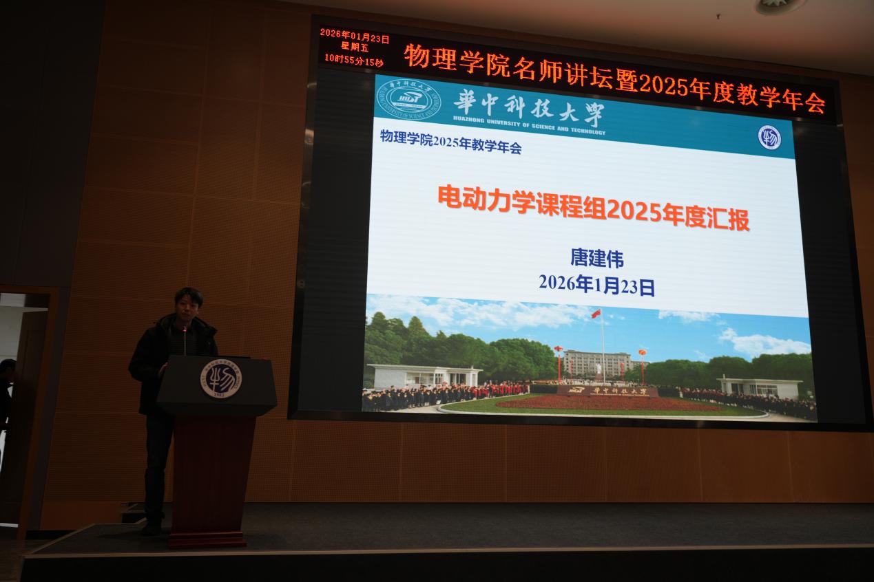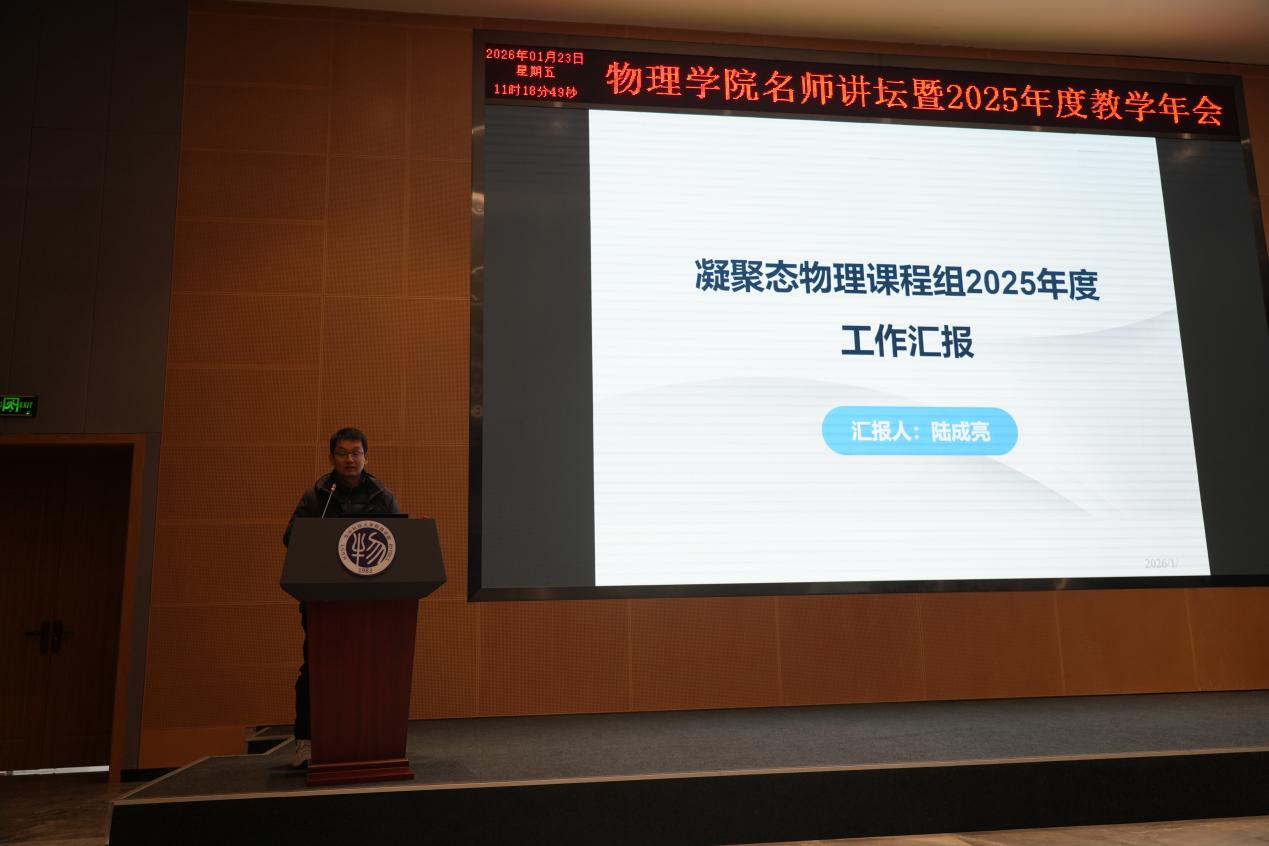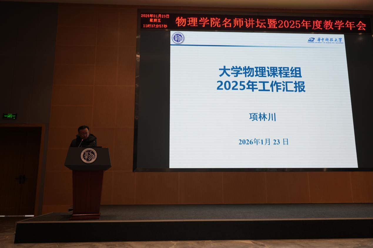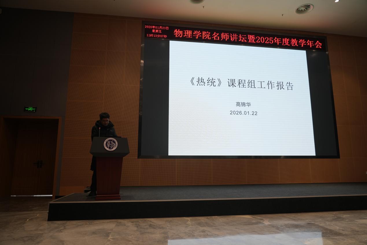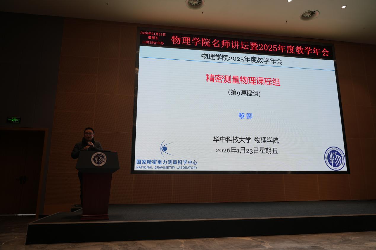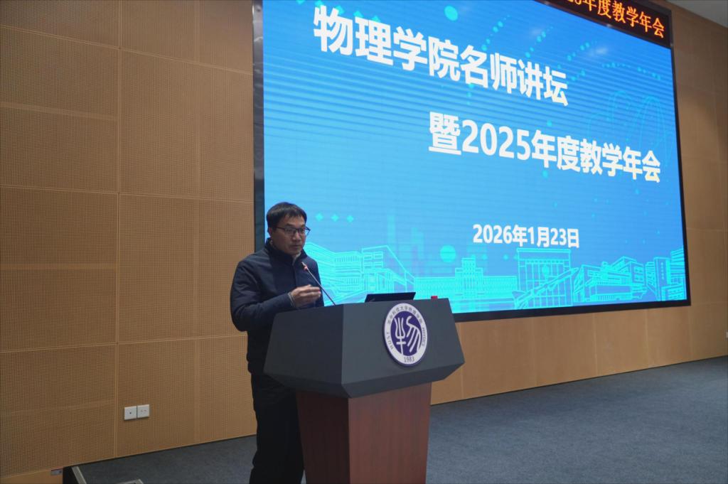 2026年1月23日上午,物理学院“名师讲坛暨2025年度教学年会”在精密重力测量科学中心A栋W401报告厅隆重举行。本次会议特邀国家教学名师、上海交通大学物理与天文学院胡其图教授作专题报告。胡其图教授现任教育部高等学校大学物理课程教学指导委员会副主任委员,并连续五届担任教育部高等学校教学指导委员会委员,在物理基础课程教学与课程建设方面成就卓著。他主持建设的多门课程获评国家级一流本科课程,曾获国家级教学成果奖5项、国家级优秀教材奖3项及全国优秀教师等多项重要荣誉。