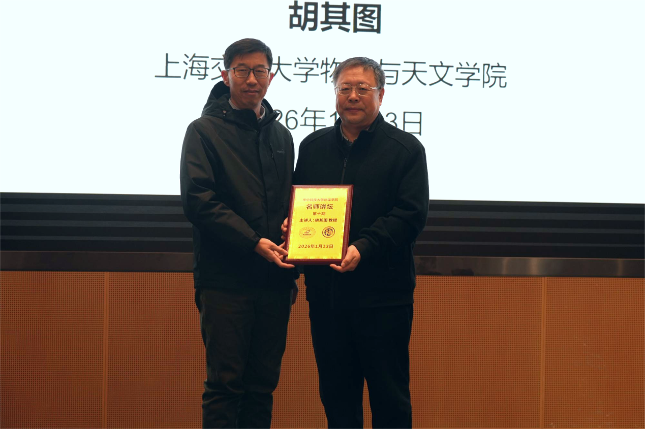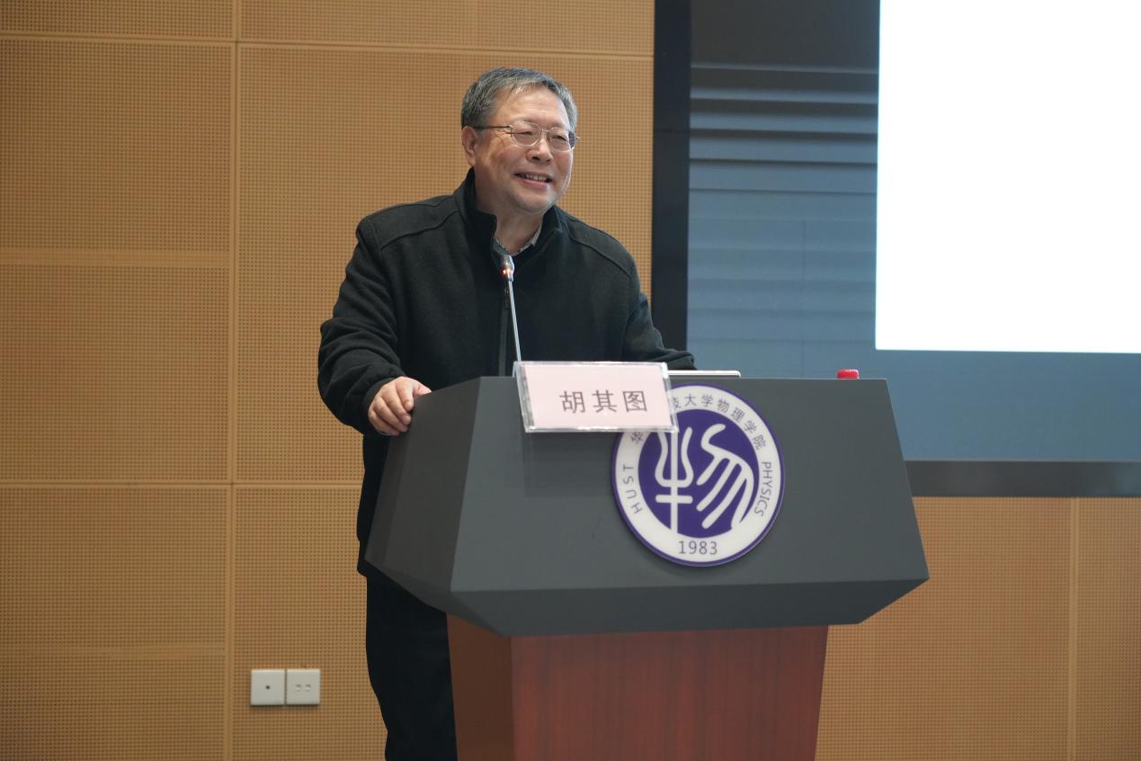 报告开始前,主持人吕京涛副院长向远道而来的胡其图教授表示欢迎,并颁发了华中科技大学物理学院“名师讲坛”证书。